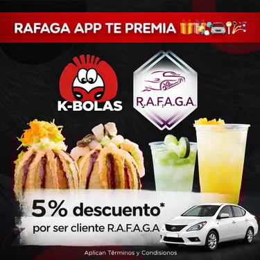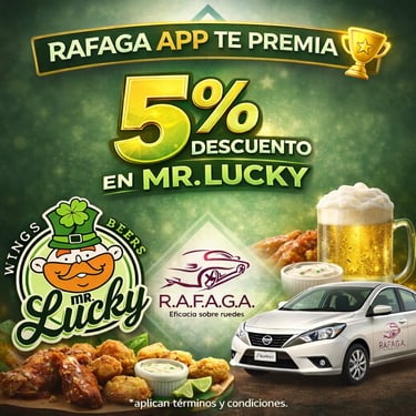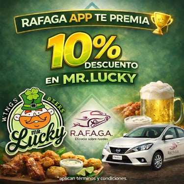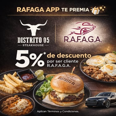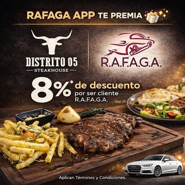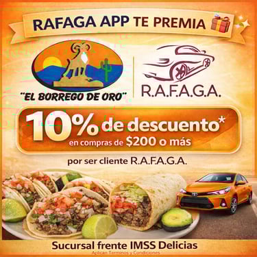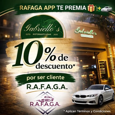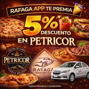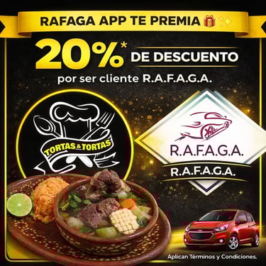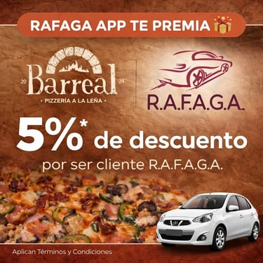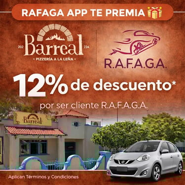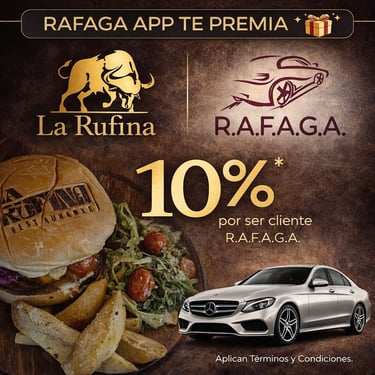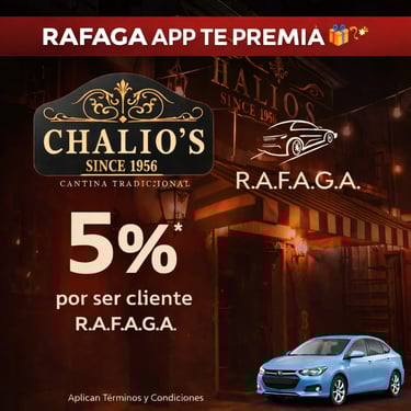 Empieza a ganar a partir del viaje #15 que realices con RAFAGA APP, gracias a nuestros Negocios Aliados.