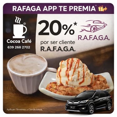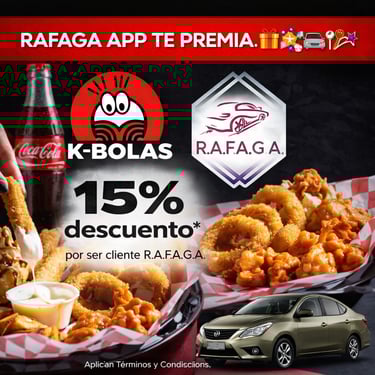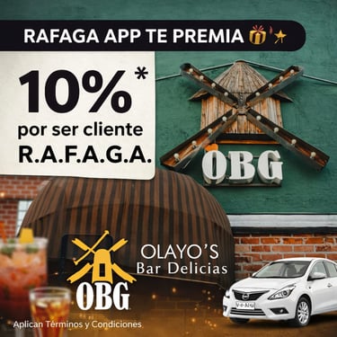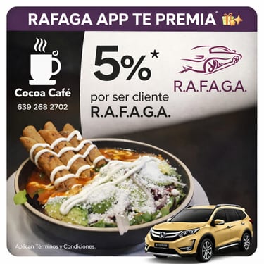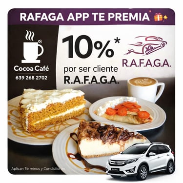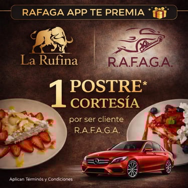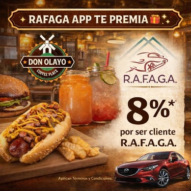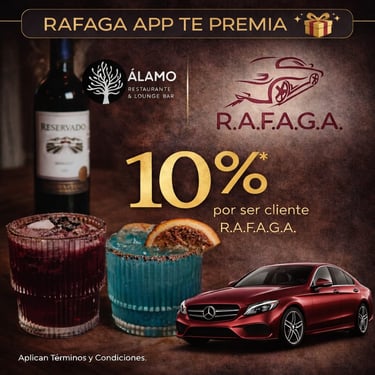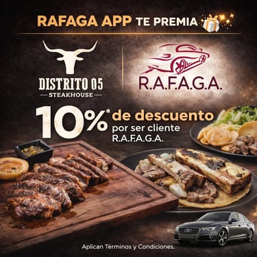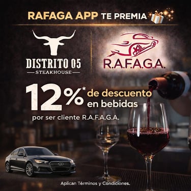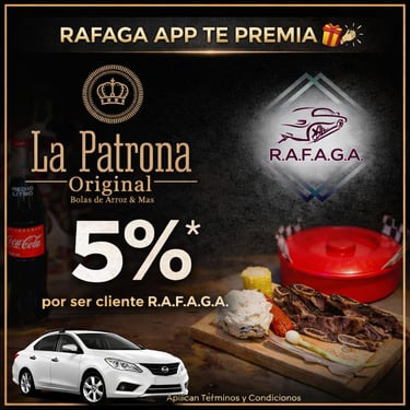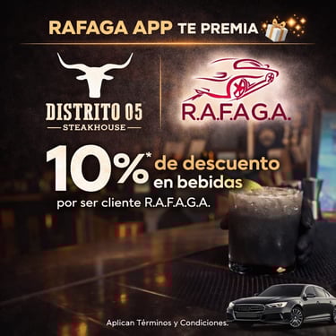 El programa de cupones de R.A.F.A.G.A. constituye un beneficio promocional de carácter discrecional, otorgado a los usuarios de la plataforma en función del número total de viajes efectivamente completados y validados dentro del sistema. Cada cupón será emitido por única ocasión por cada rango de viajes alcanzado, conforme a los niveles, periodos y condiciones previamente establecidos por la empresa. Los cupones no son acumulables entre sí, no son transferibles, no podrán ser objeto de cesión a terceros, ni canjeables por dinero en efectivo, bienes o servicios distintos a los expresamente autorizados.